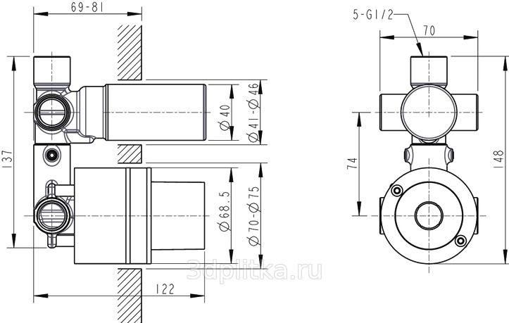 Bravat D969CP-B-ENG Скрытая часть смесителя 12,2x7x13,7 см, Германия - фото 2
