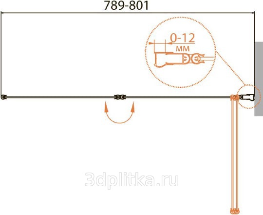| Дополнительная информация: Регулировка ширины предусмотрена за счет боковых профилей, от 79,8 до 80.1 Количество секций: 2 Конструкция дверей: распашные Исполнение стекла: Рифлёное Ориентация: правая |