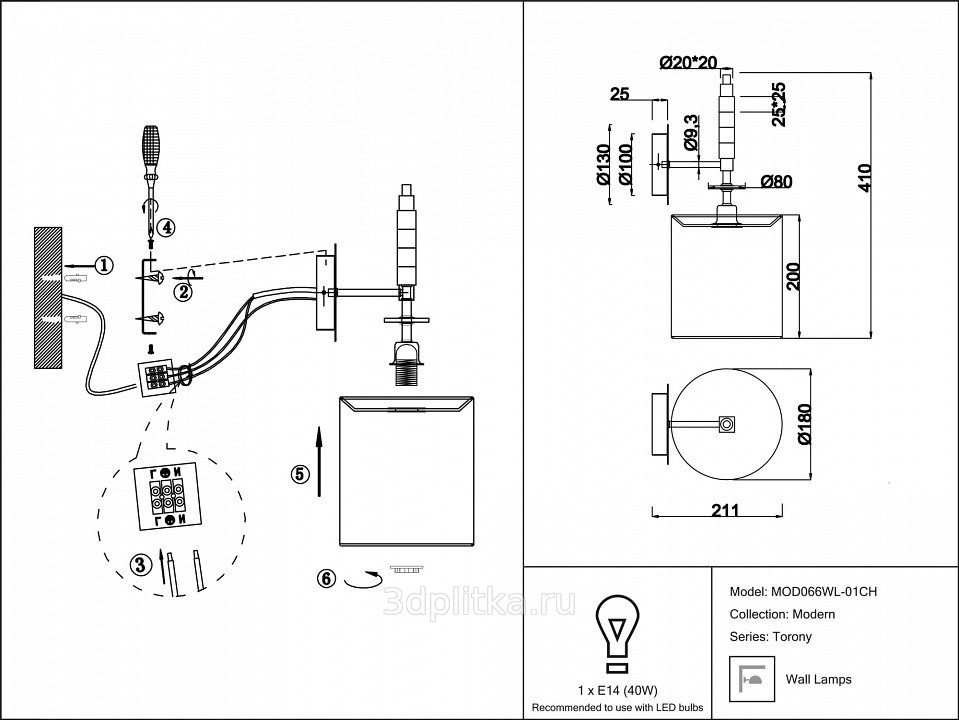 Maytoni Torony MOD066WL-01CH Бра 18x41 см, Германия - фото 1