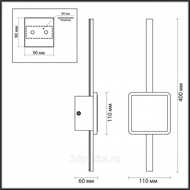 Размеры 11x40 см