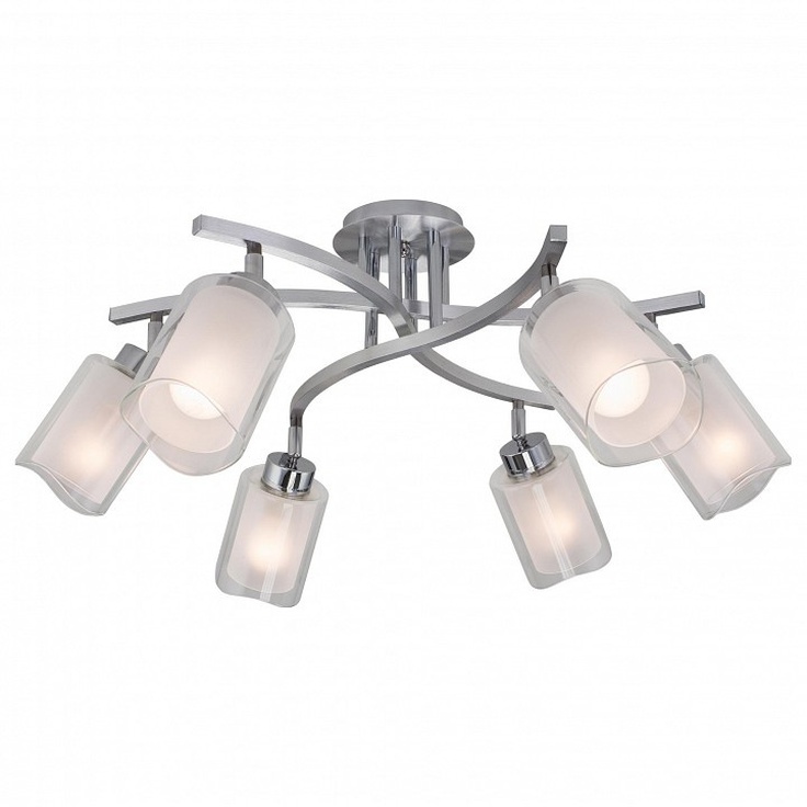 Диаметр 58 см, Высота 31 см, Плафоны составные с прозрачной и матовой частями, установлены на шарнирах, Арматура из алюминия и хромированной стали