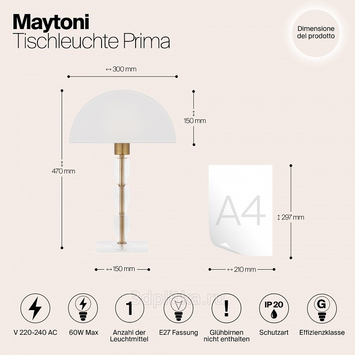 Maytoni Prima Z034TL-01BZ Настольная лампа декоративная 12x47 см, Германия - фото 8