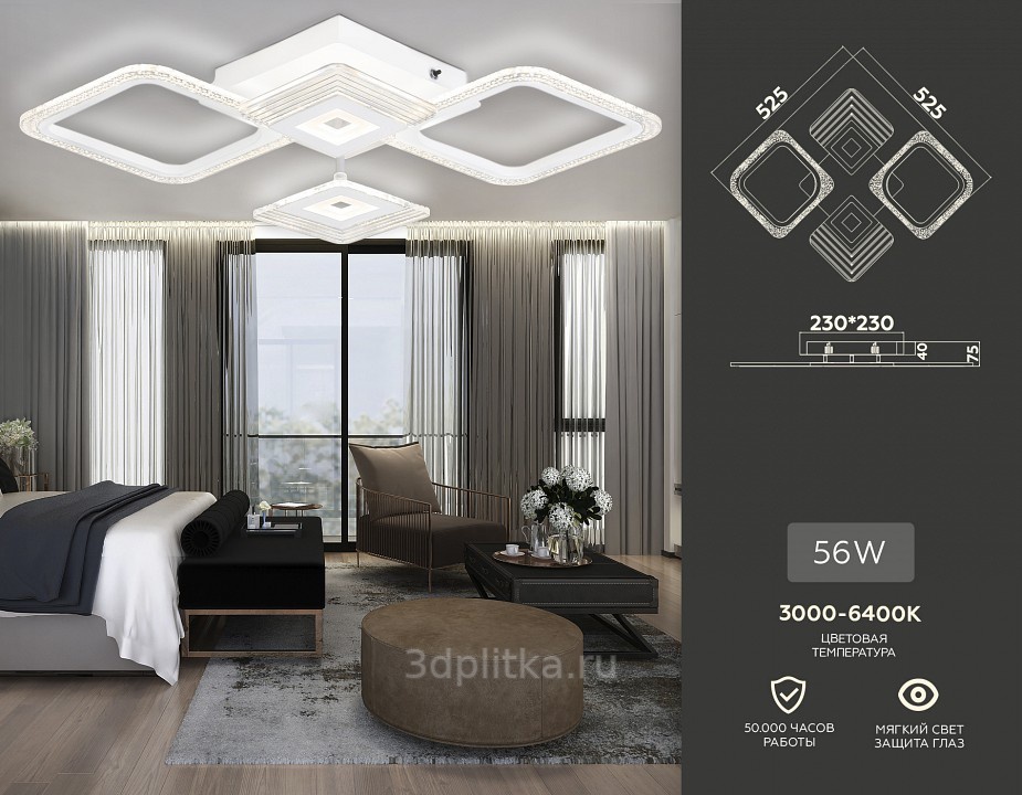 Размеры 52.5x52.5x7.5 см