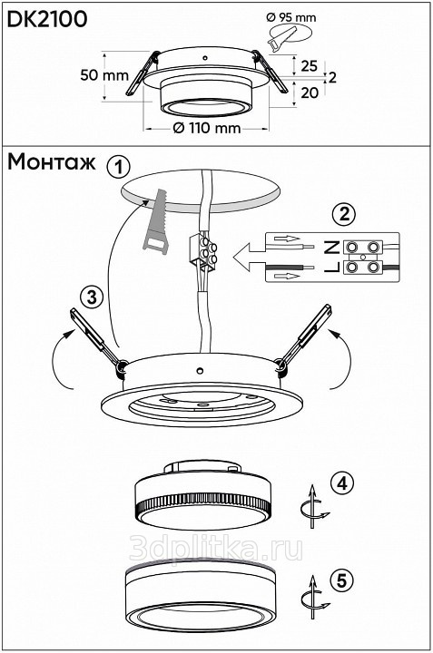 Denkirs Niko DK2100-BK Встраиваемый светильник Дания - фото 5