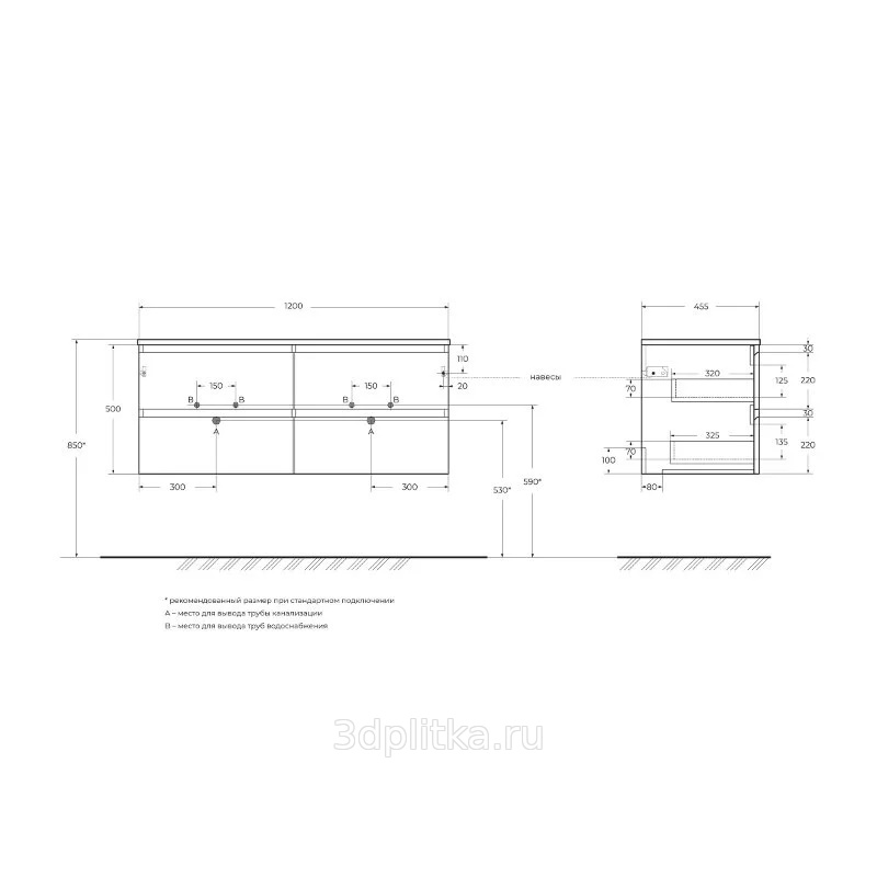 Размеры 46x120x50 см