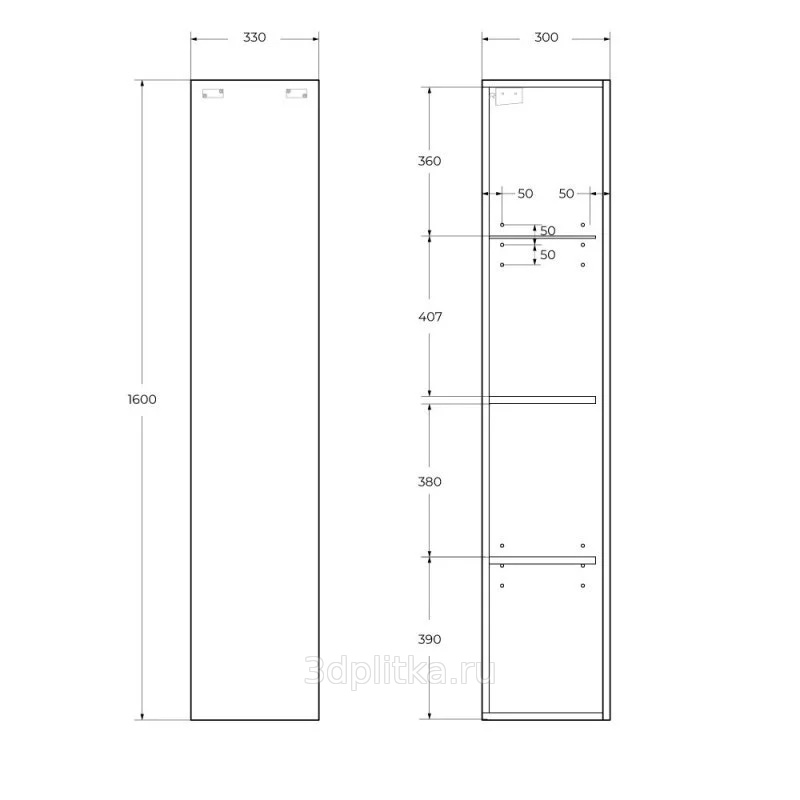 1 дверца, 3 полки внутри