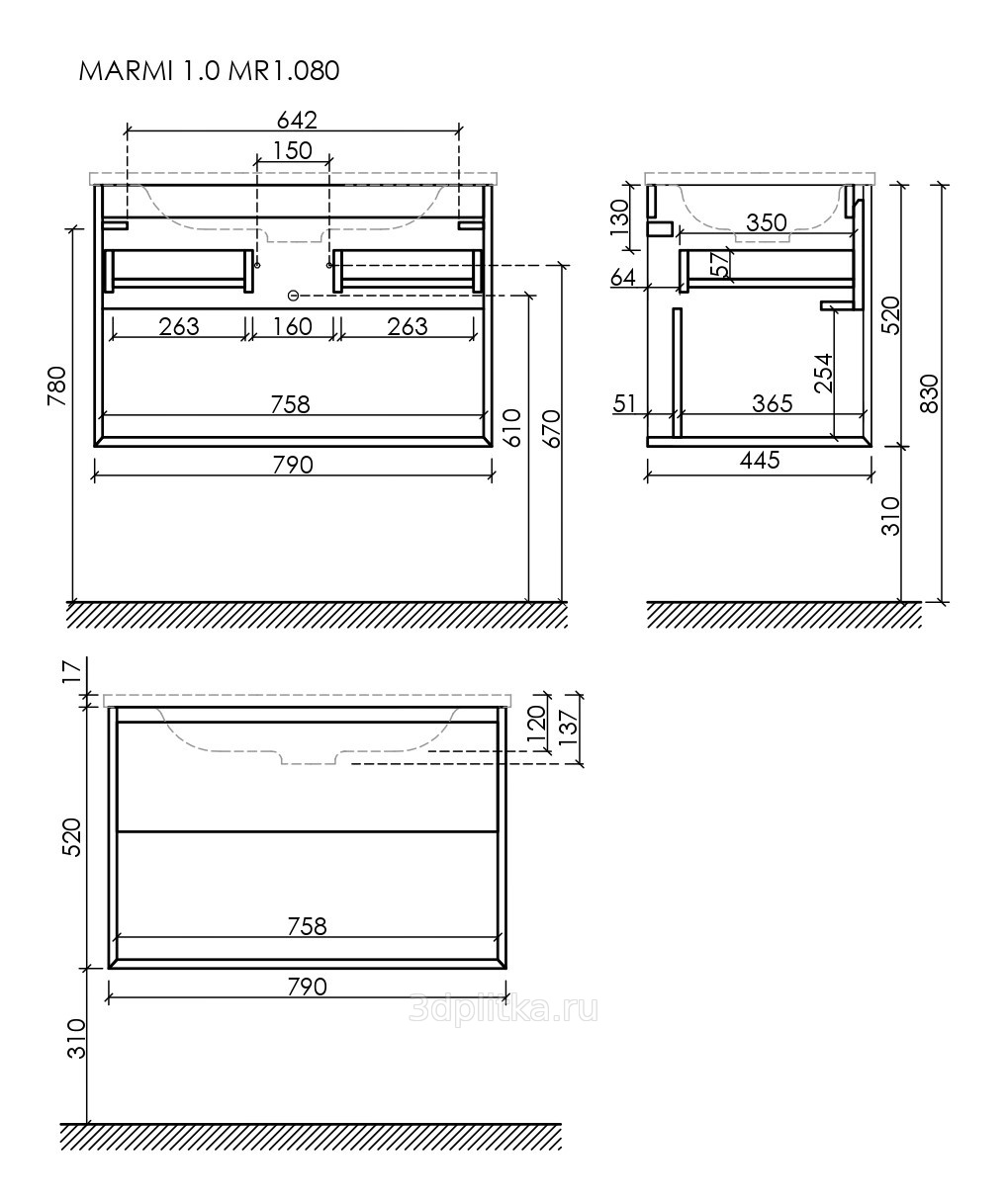 Тумба для раковины Sancos Marmi 1.0 MR1.080ECH Дуб чарльстон 80