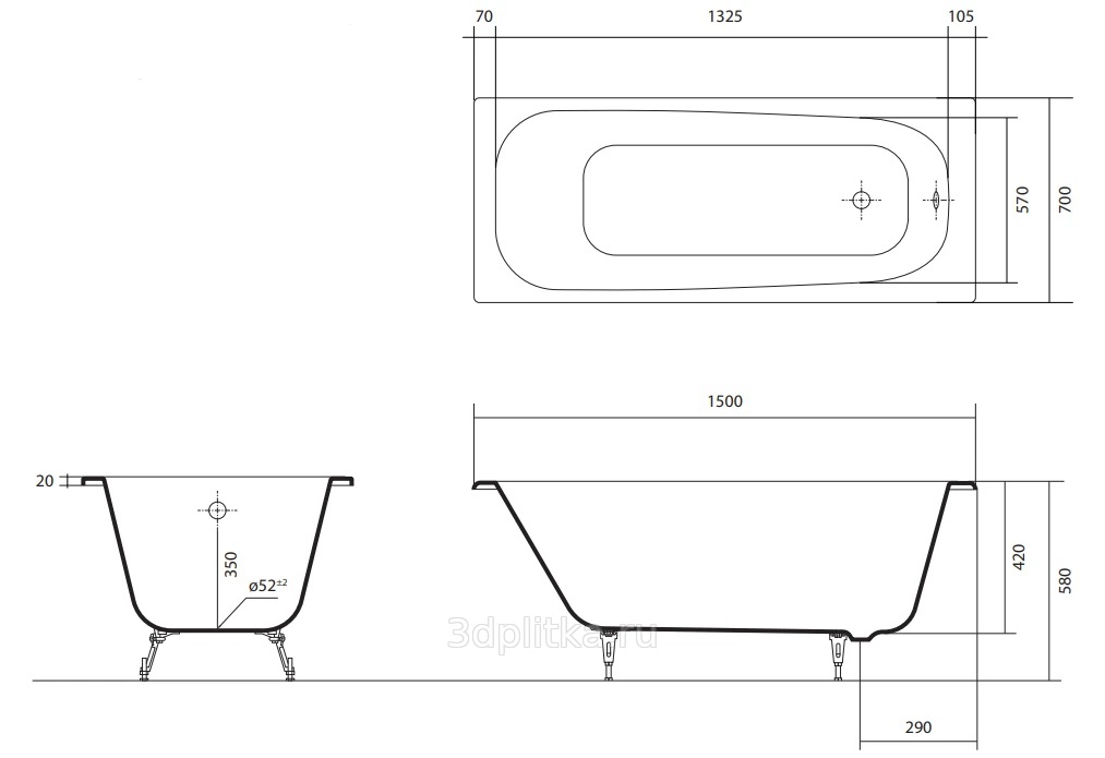 Ванны обладают увеличенным внутренним объемом по сравнению со многими европейскими аналогами. Глубина ванн варьируется от 420 до 500 мм в зависимости от модели.