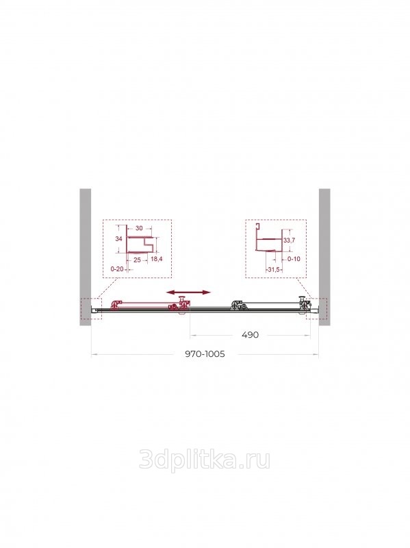 | Дополнительная информация: Регулируемая ширина 97-100,5 см. Модель: Uno 195-BF-3-100-P-Cr Ширина дверного проема: 49.0 см Цвет профиля: хром |