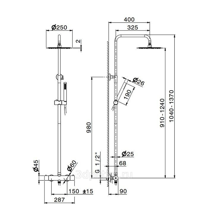 Размер верхнего душа