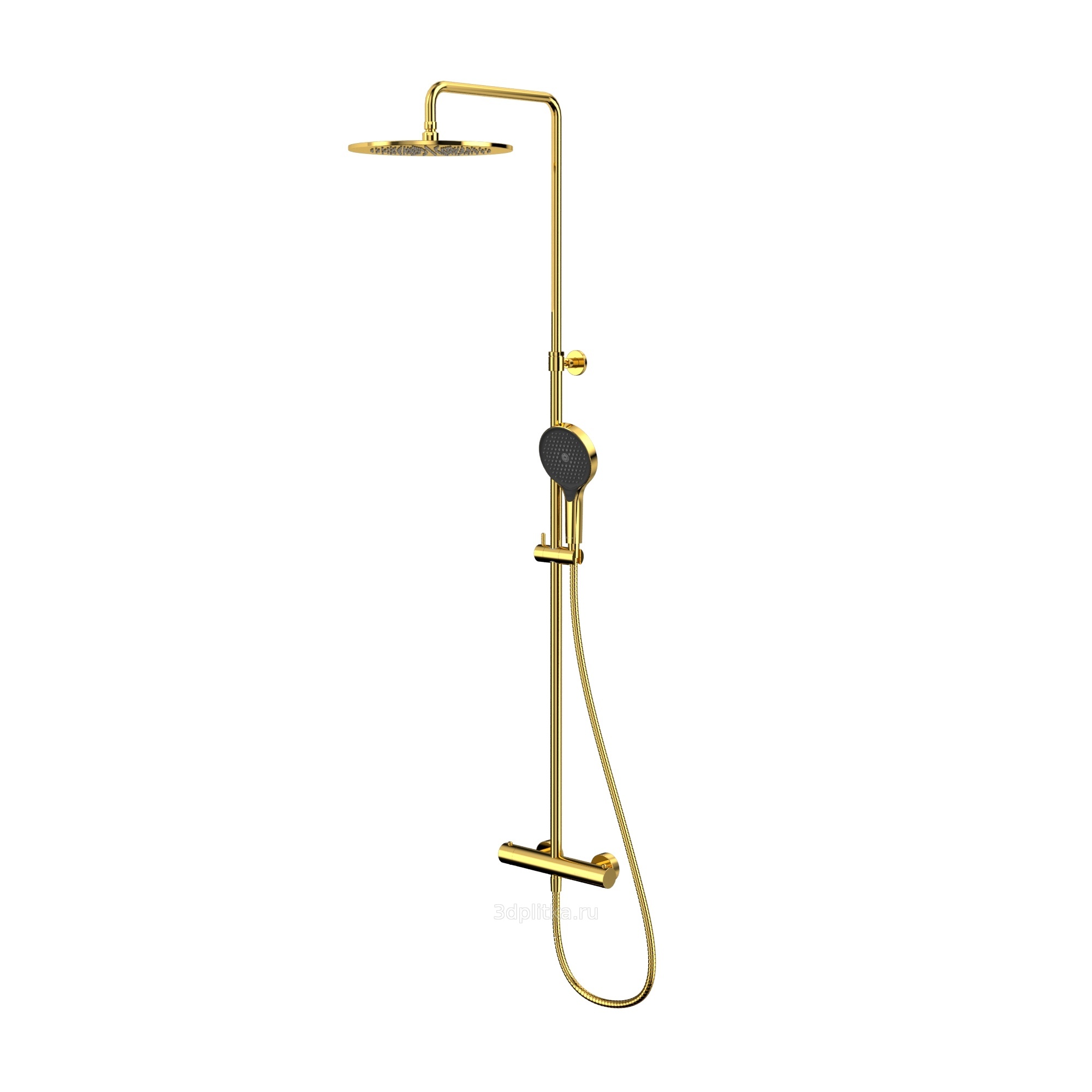 верхний душ, внутренняя часть смесителя, душевая лейка, излив, настенный держатель, смеситель, шланг для душа, шланговое подключение