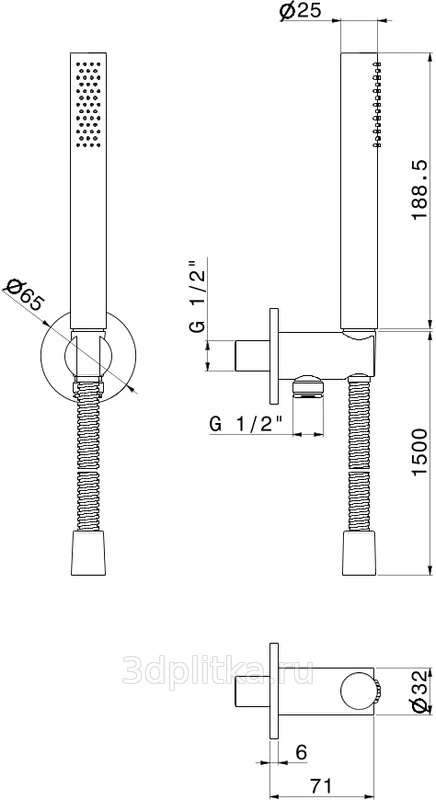 душевая лейка, настенный держатель, шланг для душа