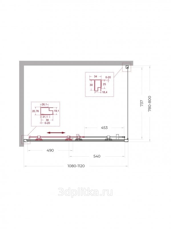 | Дополнительная информация: Регулировка ширины от 108 см до 112 см, регулировка длины от 78 см до 80 см. Модель: Uno 195-AH-1-110/80-C-NERO Ширина дверного проема: 54.0 см Цвет профиля: черный |