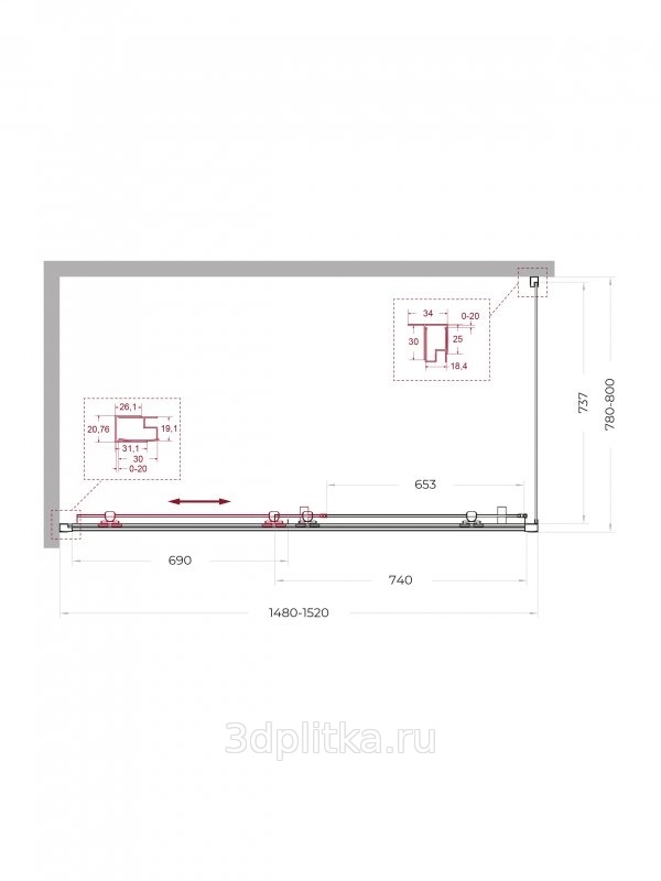 | Дополнительная информация: Регулировка ширины от 128 см до 132 см, регулировка длины от 78 см до 80 см. Модель: Uno 195-AH-1-130/80-C-NERO Ширина дверного проема: 64.0 см Цвет профиля: черный |
