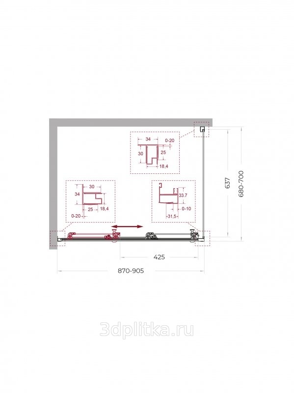 | Дополнительная информация: Регулировка ширины от 87 до 90,5 см, регулировка длины от 98 до 100 см. Модель: Uno UNO-195-AHF-31-90/100-C-Cr Ширина дверного проема: 42.5 см Цвет профиля: хром |