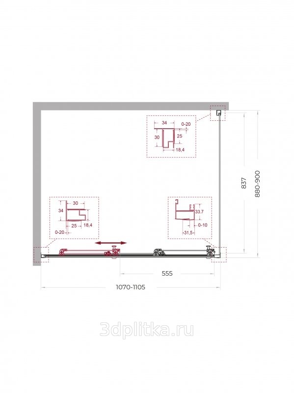| Дополнительная информация: Регулировка ширины от 107 до 110,5 см, регулировка длины от 78 до 80 см. Модель: Uno UNO-195-AHF-31-110/80-C-Cr Ширина дверного проема: 55.5 см Цвет профиля: хром |