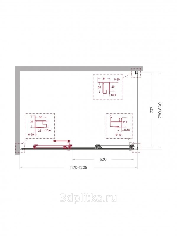 | Дополнительная информация: Регулировка ширины от 117 до 120,5 см, регулировка длины от 78 до 80 см. Модель: Uno UNO-195-AHF-31-120/80-C-Cr Ширина дверного проема: 62.0 см Цвет профиля: хром |