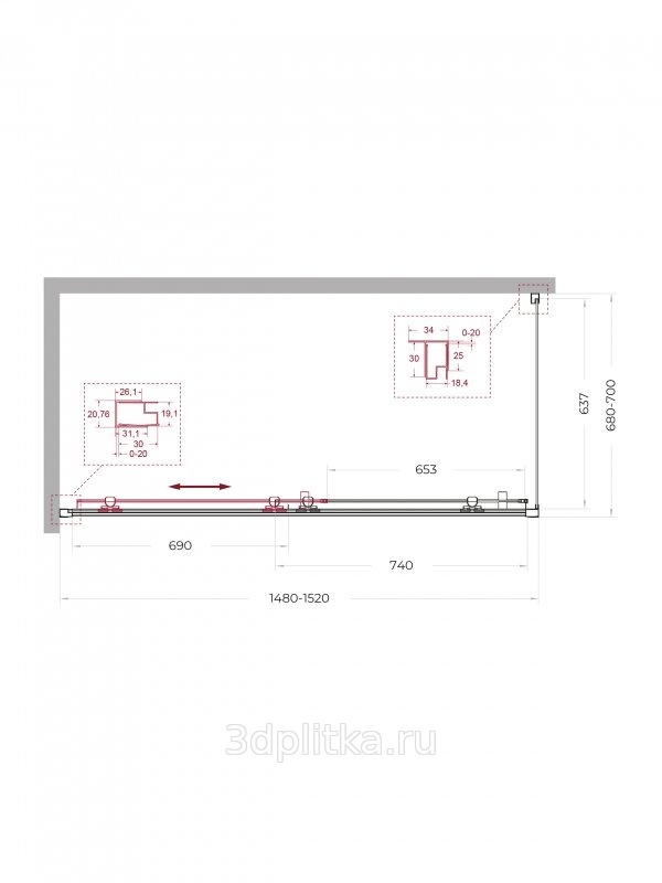 | Модель: Uno 195-AH-1-110/80-C-Cr Ширина дверного проема: 54.0 см |