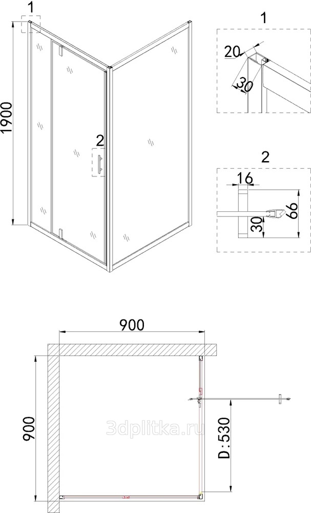 | Модель: Nova NG-63-9A-A90 Конструкция дверей: распашная Ширина дверного проема: 53.0 см Форма: квадратная |