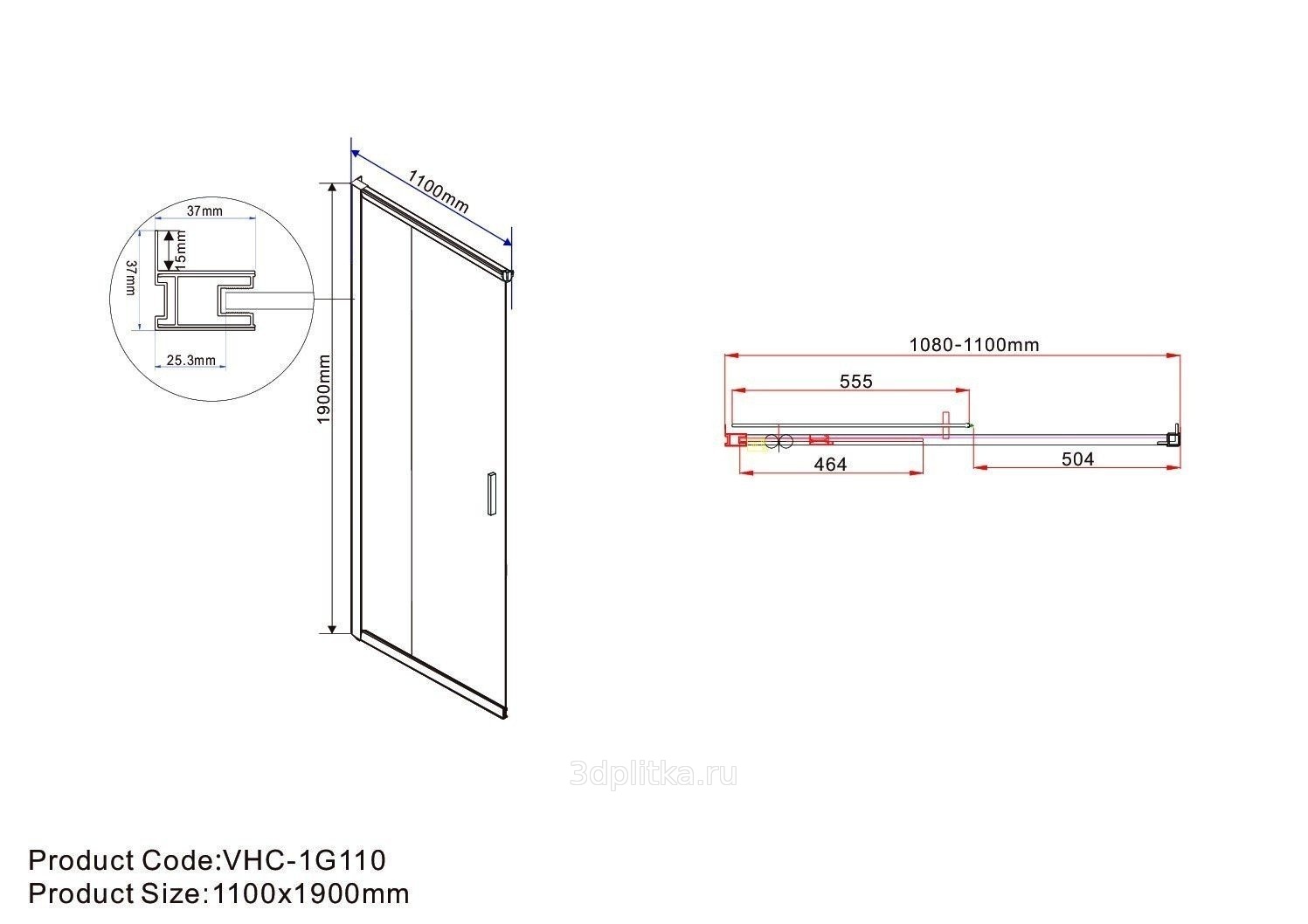 | Модель: VSS-1G1011CL Цвет профиля: хром Цвет стекол: прозрачный |