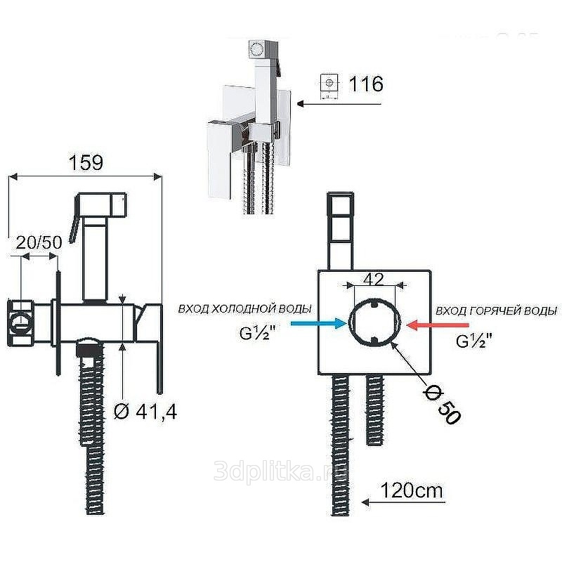 держатель для душа, скрытая монтажная часть, смеситель, душевая лейка, шланг для душа