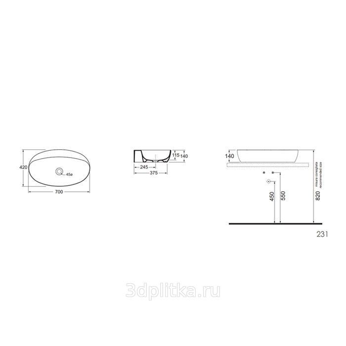 Раковина Azzurra Elegance ELLA070420C0BI/(ECI70 bi)*0 Накладная Блая 70