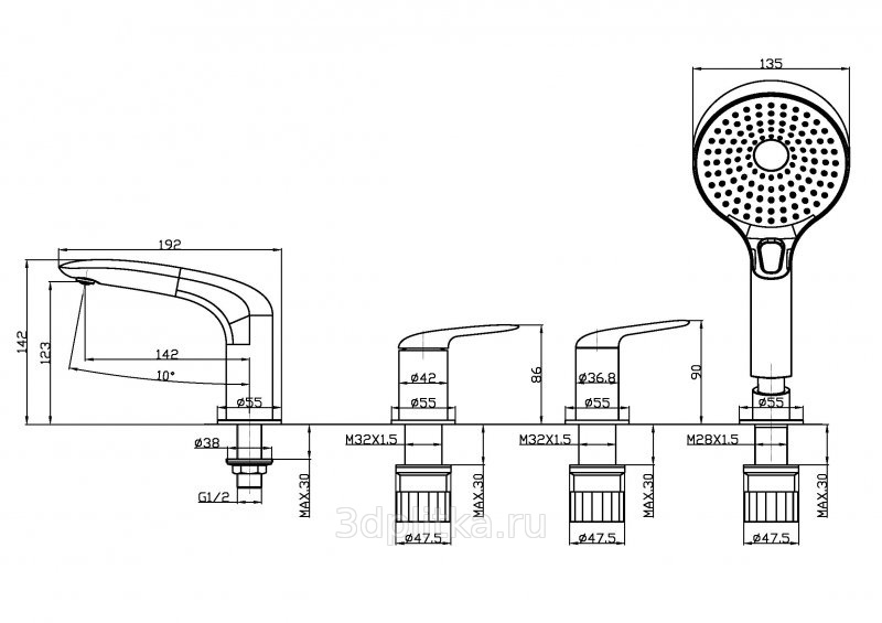 Cezares Metauro BVD4-01 Для ванны на борт ванны Хром Смеситель для ванны, Италия - фото 2
