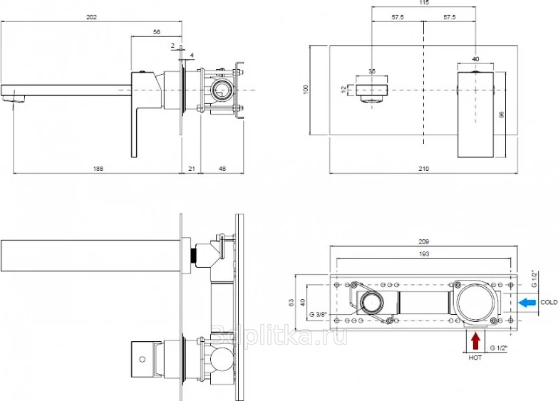 Cezares Unika BLI1-03/24 Встраиваемый для раковины Золото Смеситель 20,2x21x10 см, для встраиваемых систем, Италия - фото 4