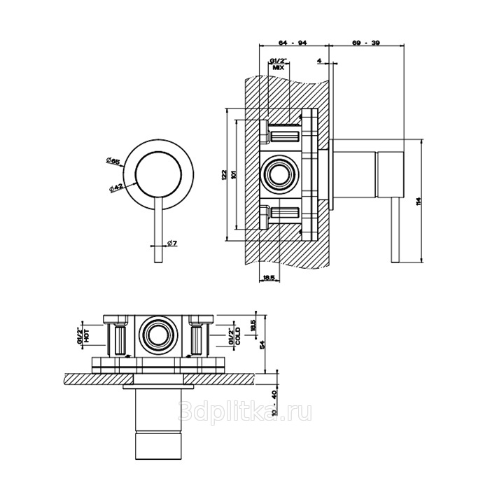 внутренний (скрытый монтаж), на стену