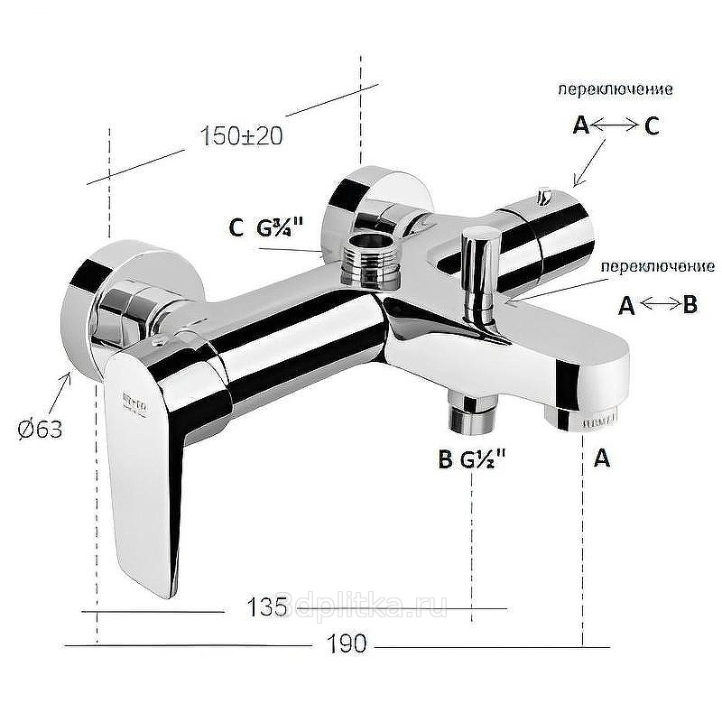 Возможность подключить душевую колонну с присоединительным размером G 3/4.