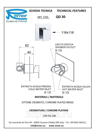 Remer Dream D30 Для душа встраиваемый Смеситель для встраиваемых систем, Италия - фото 2