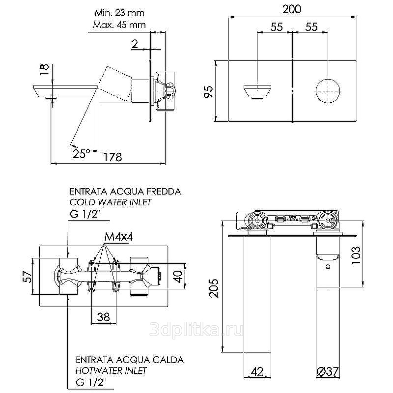 Remer Edge EG515NO Встраиваемый для раковины Чёрный матовый Смеситель 20,5x20x9,5 см, для встраиваемых систем, Италия - фото 2