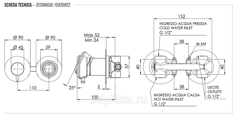 Remer Element ET92ZPXV Встраиваемый для ванны и душа Сталь Смеситель для встраиваемых систем, Италия - фото 2
