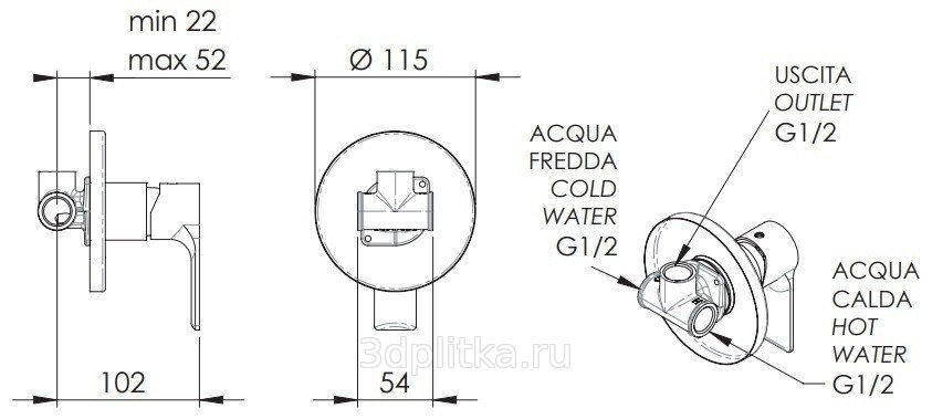 Remer Energy EY30 Встраиваемый для душа Хром Смеситель для встраиваемых систем, Италия - фото 2
