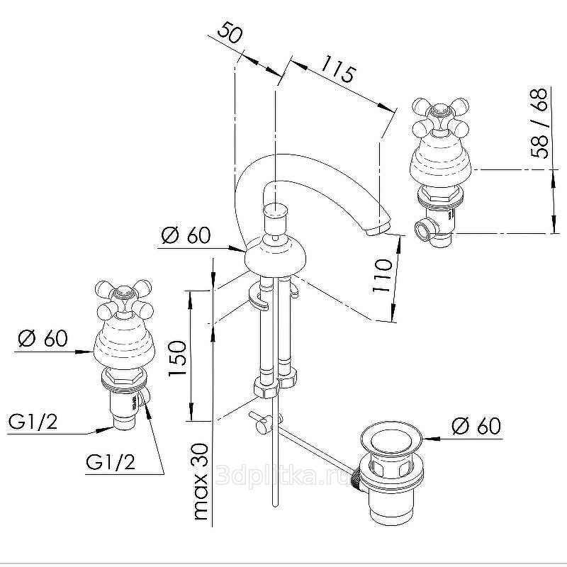 Смеситель Remer Liberty 11CLIVO Для раковины Латунь состаренная с д/к