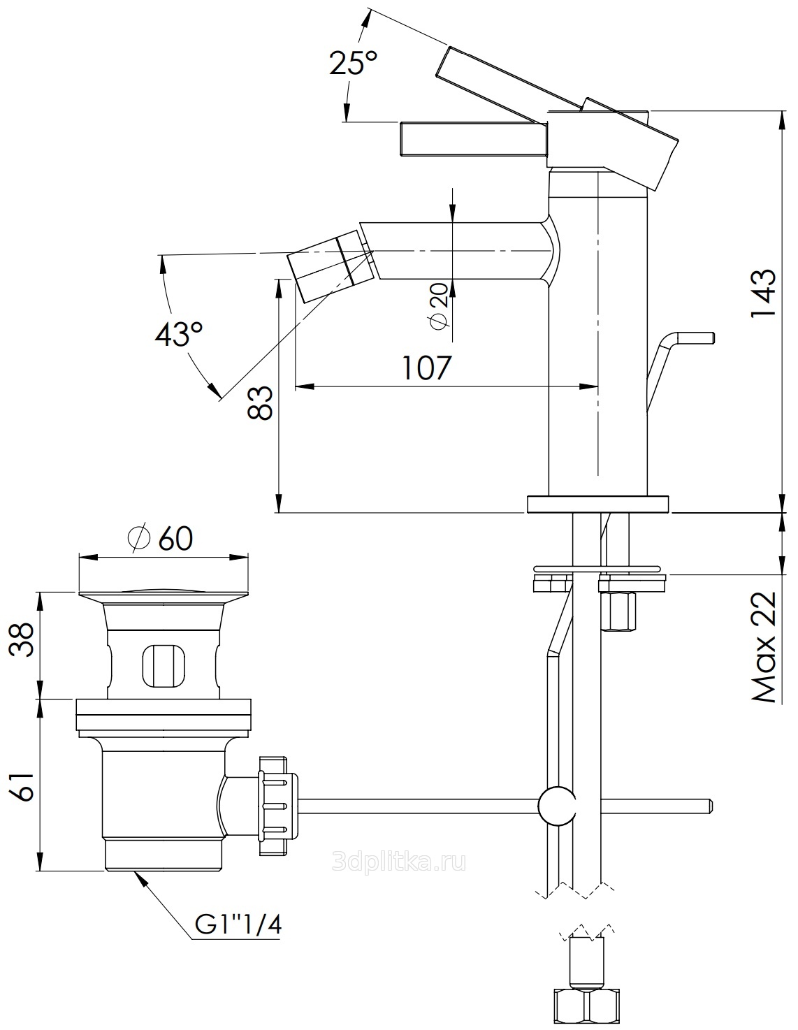 Смеситель Remer Metrica MC20 Для биде Хром с д/к