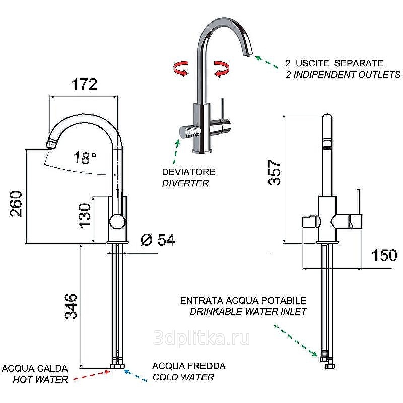 Отдельный рычаг для управления подачи питьевой воды.