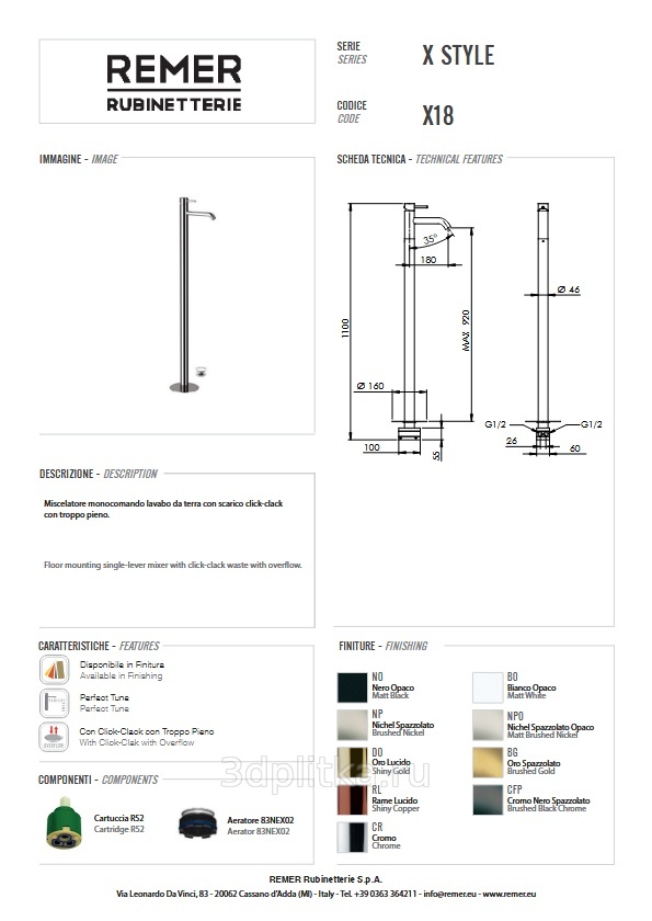 Remer X-Style X18BG Напольный для раковины Золото брашированное с д/к Смеситель 26,3x16x110 см, для раковины, Италия - фото 2