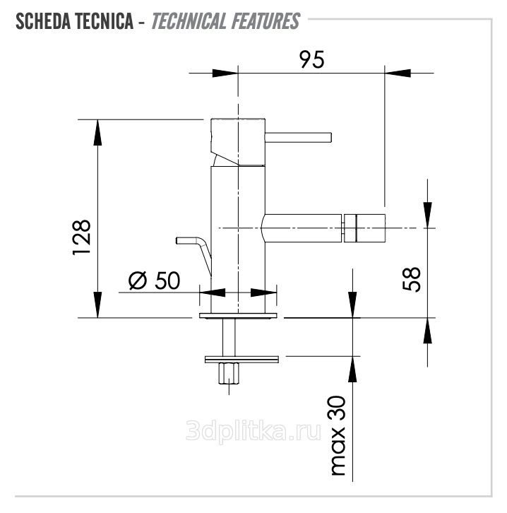 Remer X-Style X20BO Для биде Белый матовый с д/к Смеситель 12x5x12,8 см, для биде, Италия - фото 1