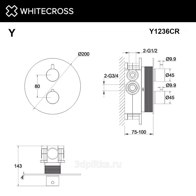 Whitecross Y 2-Y1236CR Для душа Хром Смеситель для ванны с душем, Польша - фото 2