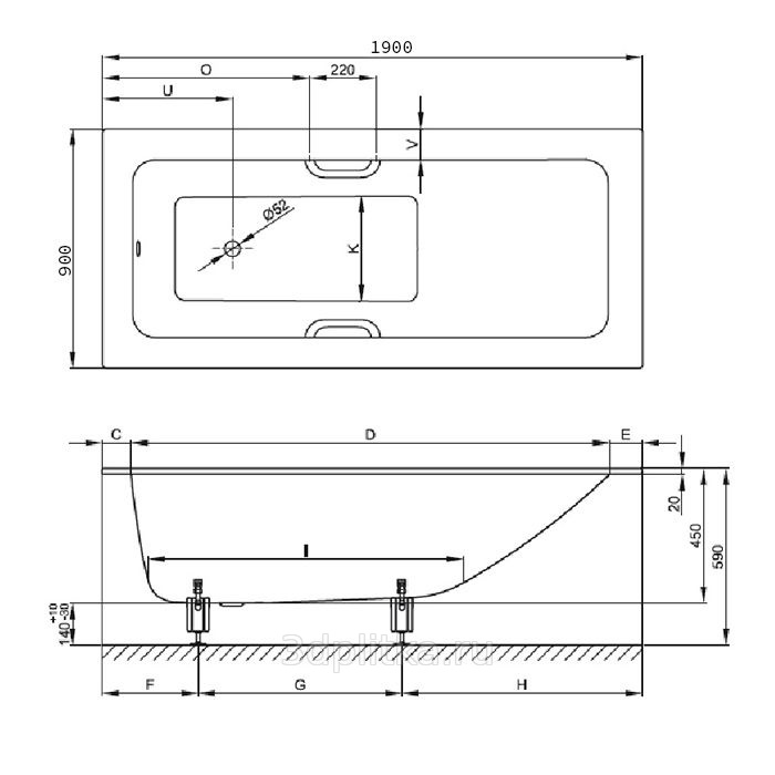 Bette One 3324-000 PLUS Белый 190х90 Стальная ванна 190x90x45 см, Германия - фото 3