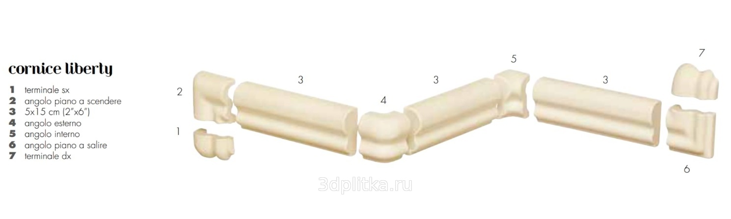 Etruria Victoria Cornice Liberty Dark Спец. Элемент 5x15 см, Италия, под камень  - фото 1