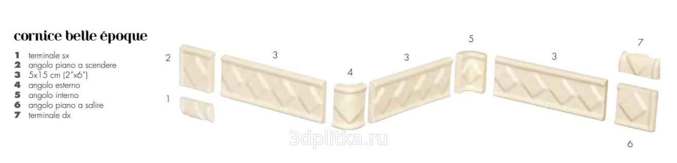 Etruria Victoria Cornice Belle Epoque Angolo Piano A Salire Scendere Moss Green Спец. Элемент 5x15 см, Италия, под камень  - фото 1