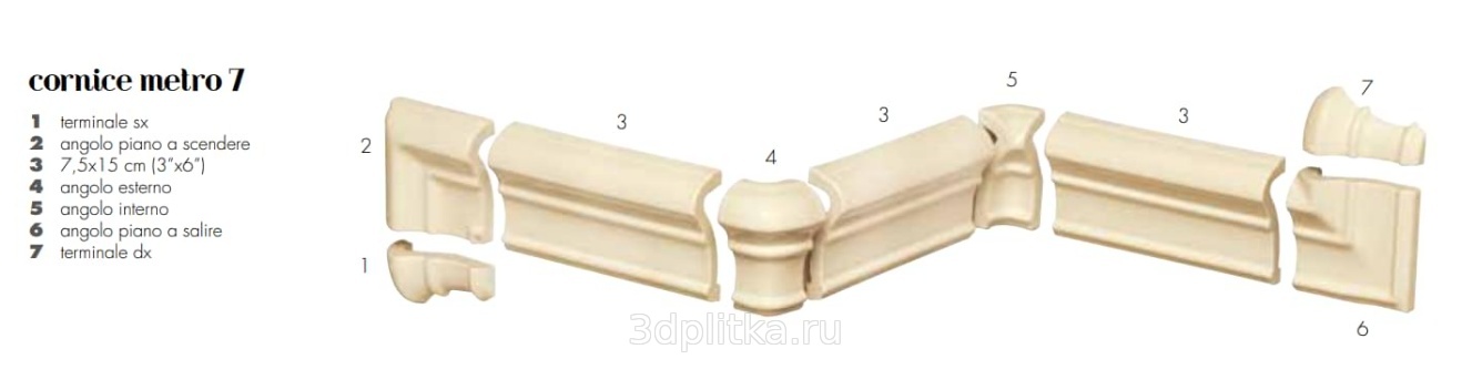 Etruria Victoria Cornice Metro 7 Terminale Dx Deep Chestnut Спец. Элемент 7,5x15 см, Италия, под камень  - фото 1